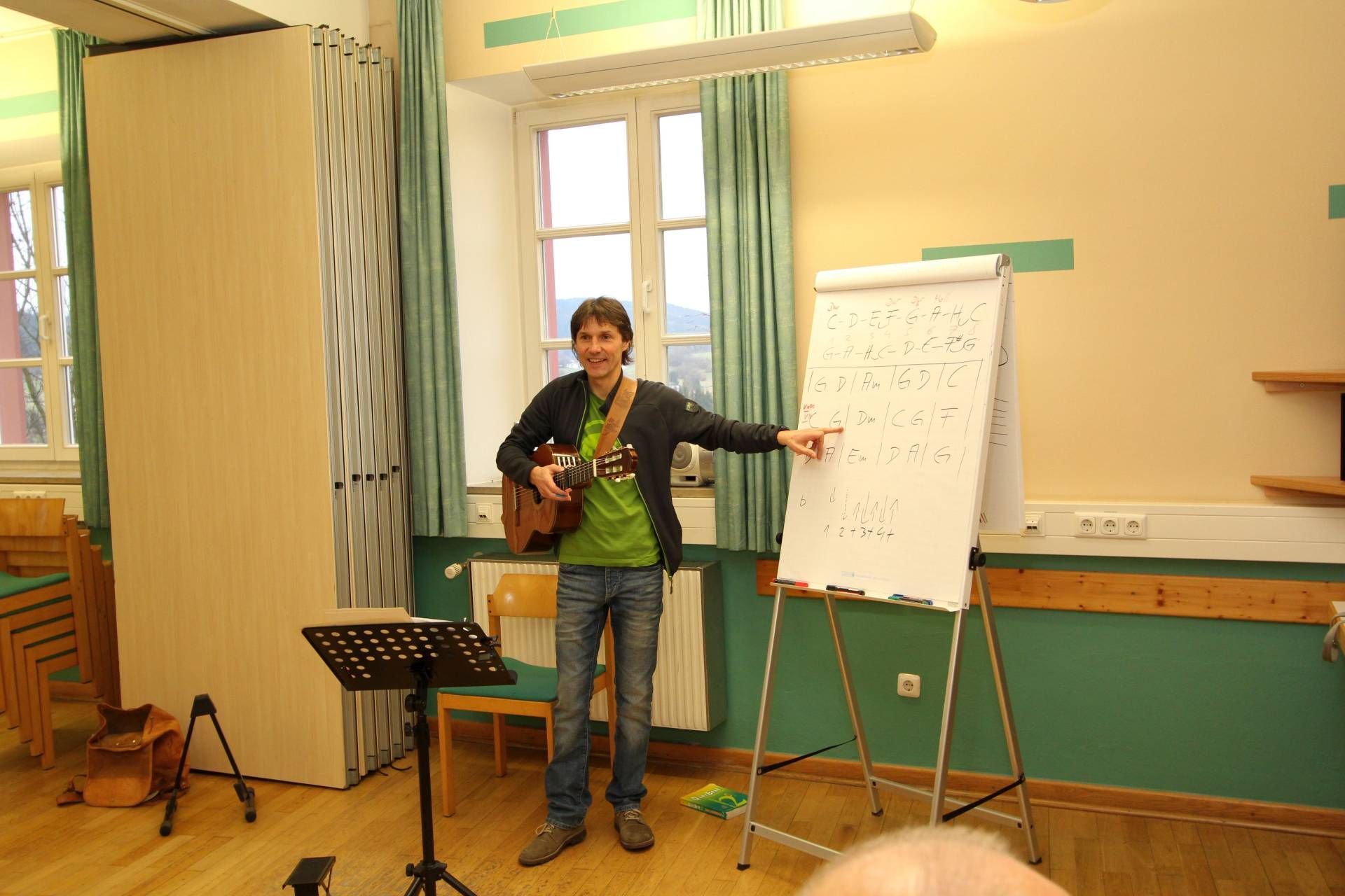 Schwerpunkte hierbei sind Notenspiel, Tabulaturen lesen, Liedbegleitung, Begleitung und Gesang.